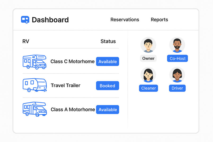 Manage multiple RVs? Need help from co-hosts or cleaners? Add team members, assign roles, and organize your fleet without chaos